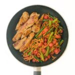Pasta is simple to prepare and is a hit with everyone. I like to make my own tomato sauce on the weekends (with either meatballs or beans in it) and keep it on hand for a quick meal during the week. You can also keep some low-sodium store bought sauce in your pantry as another easy option. I’ll serve pasta with some cooked vegetables, usually broccoli since my daughter likes it. For a different option without tomato sauce, try this Pasta with Turkey and Broccoli– it is great balanced option and comes together in 20 minutes. Separate some of the turkey mixture out into another pan before seasoning with fennel and crushed red pepper if you don’t think your kids will eat it.
